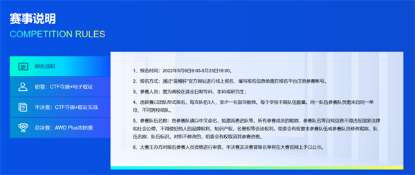 發(fā)布時(shí)間:2022-05-06 16:205月6日,2022第六屆“藍(lán)帽杯”全國大學(xué)生網(wǎng)絡(luò)安全技能大賽報(bào)名啟動(dòng),并將于2022北京網(wǎng)絡(luò)安全大會(huì)期間舉辦初賽。